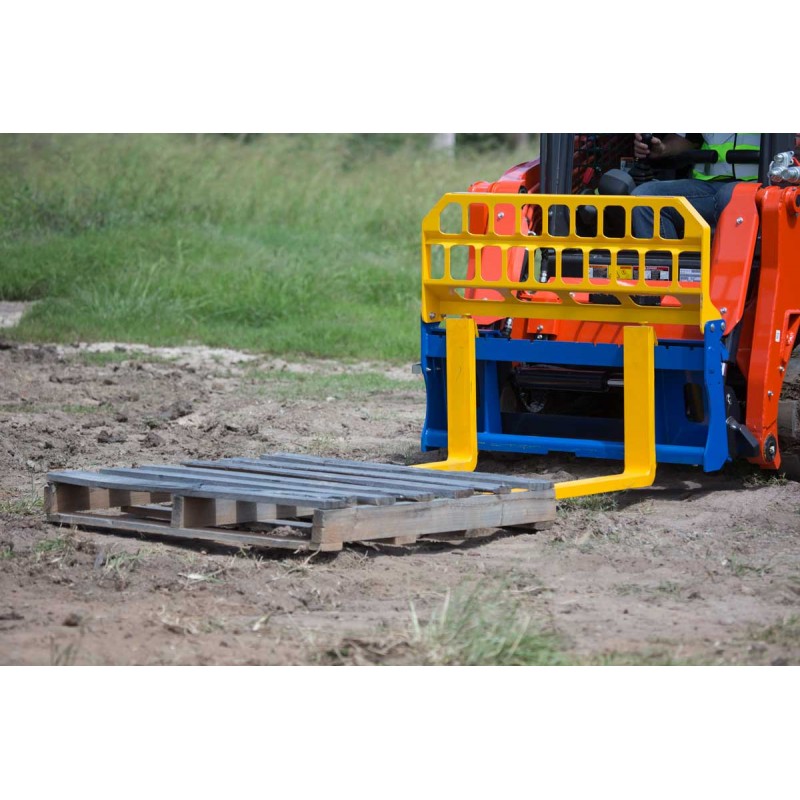 Material handling around a construction site demands a great deal of flexibility. Heavy duty construction, the precision mounting plate and various other ingenious features make our Pallet Fork attachment for the skid steer loader a ‘must have’ item. The ideal solution for locations where pallet handling is needed but the site is unmade or too rough for a forklift truck. The PF1500 can hold a weight capacity of 1500kg.