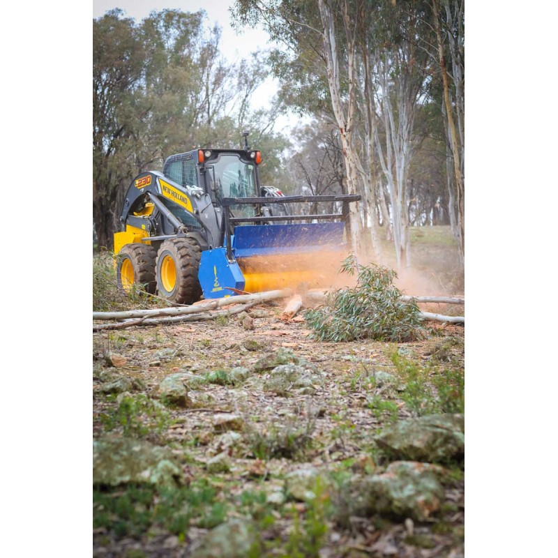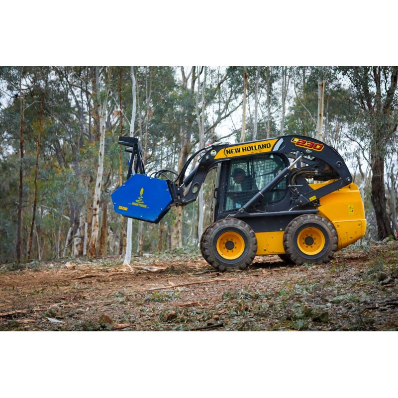 Suitable for excavators and skid steer loaders, these mulchers are capable of handling some of the toughest clearance applications as well as more precise hedge trimming, and a working width of up to 1m. The ability to attach a skid steer frame, as well as an excavator hitch at the same time, removable pressure gauge & push bar allows for easy adaptation between parent machines out on site. The fixed tungsten teeth drum gives a robust blunt cutting edge for grinding through thick timber, hedges and branches, the swinging hammer teeth drum gives a cleaner and more precise cut for dense bushes, smaller trees & even slashing grass. So, whatever the job at hand you can easily switch between drums & parent machine, providing the ultimate solution for all your land clearing needs.