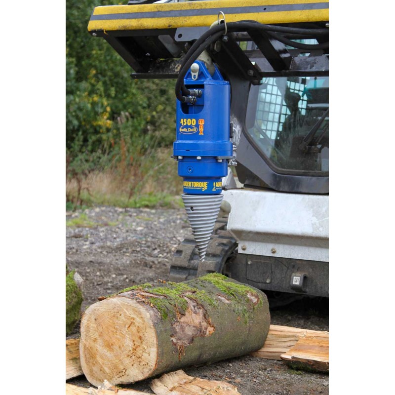 Suitable for excavators from 1T – 5T and skid steer loaders, Auger Torque’s compact and robust log splitter makes light work of processing those fallen trees into manageable pieces, quickly and efficiently. As the log Splitter rotates, the self-guiding threaded body engages with the timber and draws the splitter into the log. The conical shape quickly works its way through the log, splitting the log in two. For larger logs, the Splitter can be repositioned to continue the split along the whole length of the log. The Auger Torque log splitter is a quick and easy additional attachment to your existing earth drill.